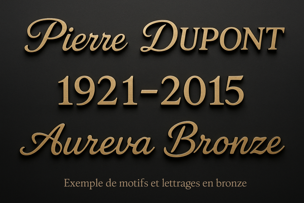 Notre processus de fabrication allie tradition et innovation, avec des collaborateurs hautement qualifiés qui mettent tout leur savoir-faire au service de la création de chaque pièce. Chaque lettre, chaque plaque est soigneusement réalisée avec une précision exceptionnelle. Nous travaillons le bronze en utilisant des techniques transmises de génération en génération, pour vous offrir des œuvres d’art funéraires d’une qualité inégalée.